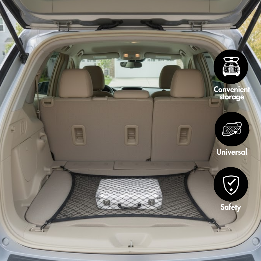 Unser Kofferraumnetz schützt Ihre Gegenstände vor Beschädigungen und sorgt so für eine reibungslose und stressfreie Fahrt.