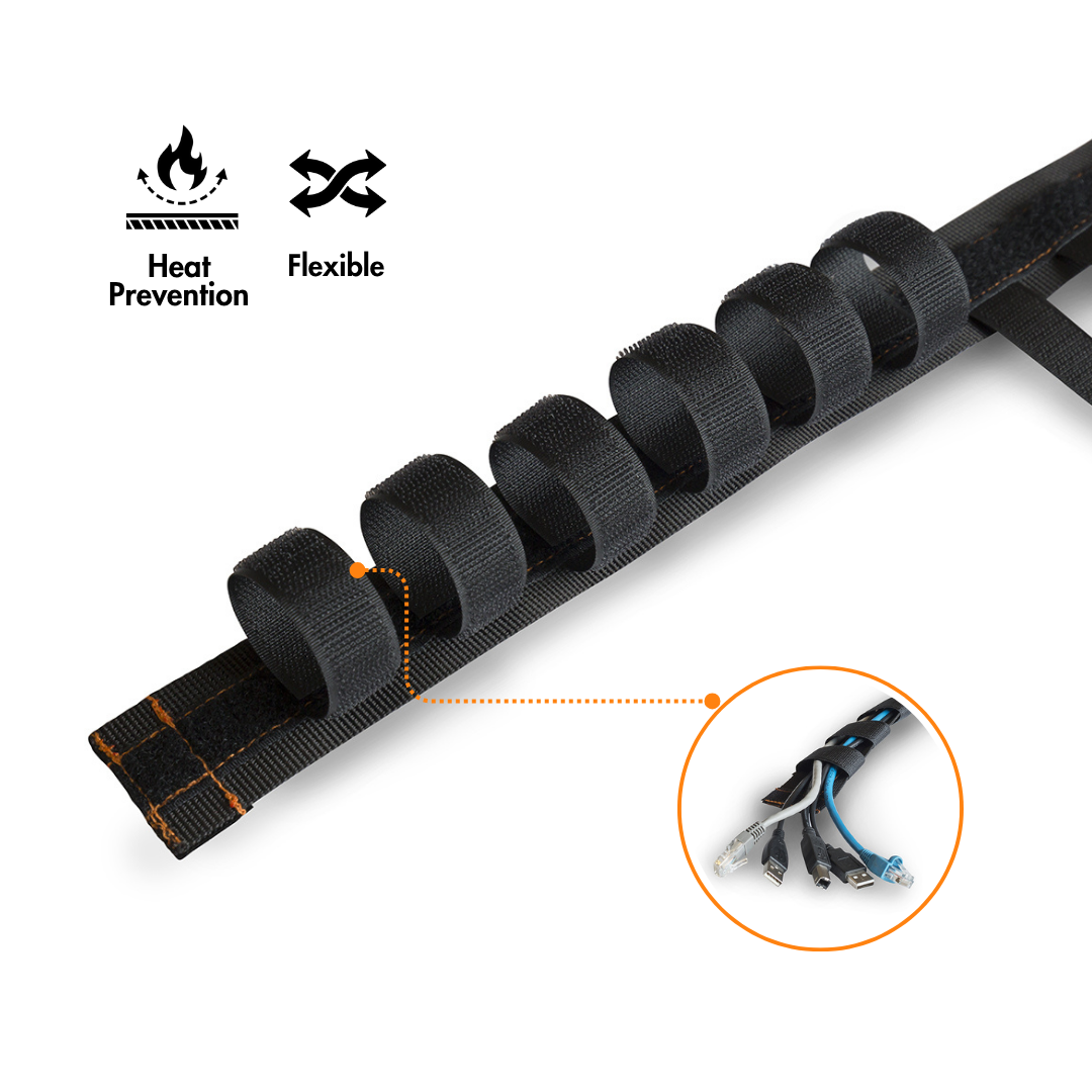 Velcro fasteners and a sleek design make installation and cleaning simple, keeping cables tidy and accessible.