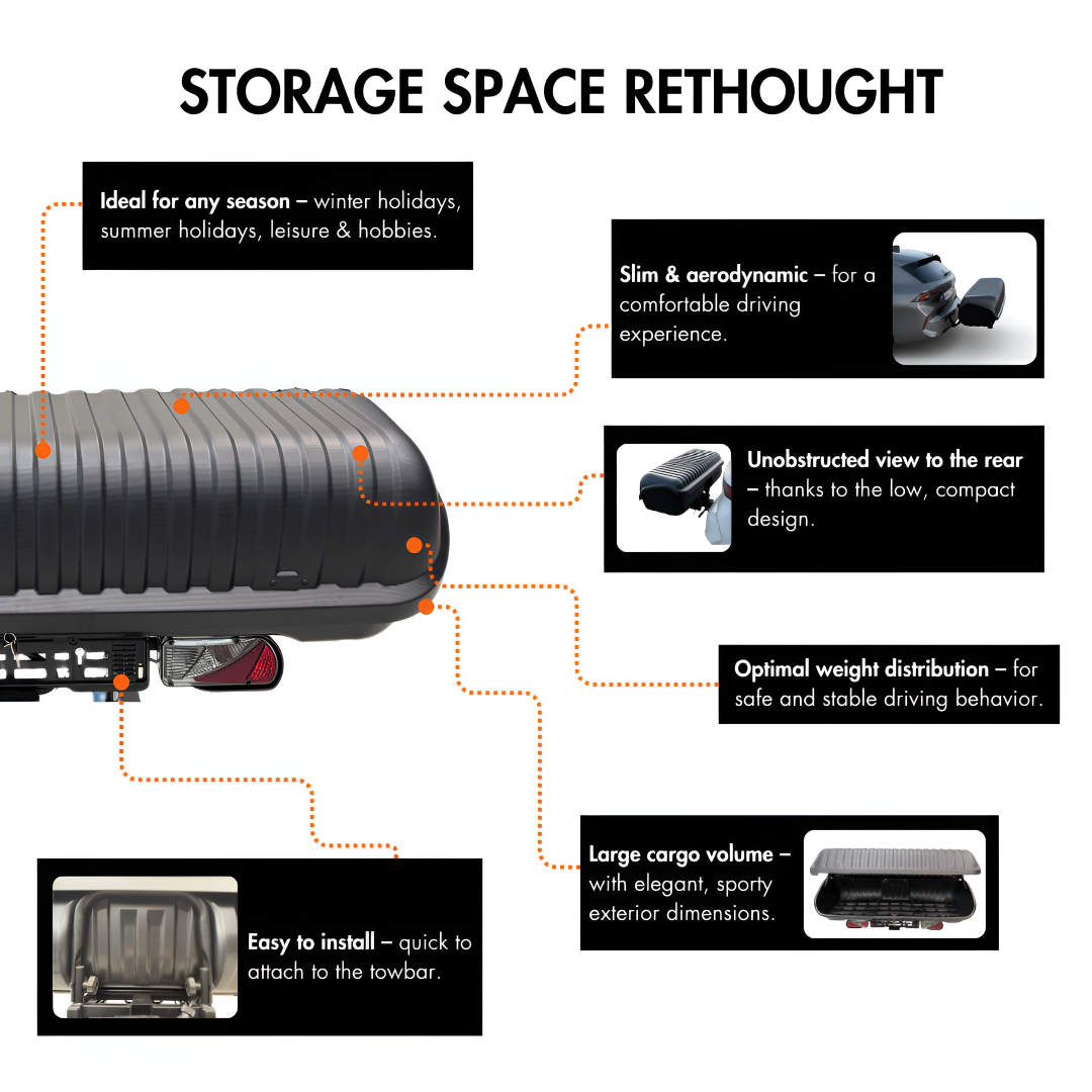 Constructed from high-quality materials with a reliable locking mechanism and solid towbar mounting, ensuring durability, safety, and long service life.